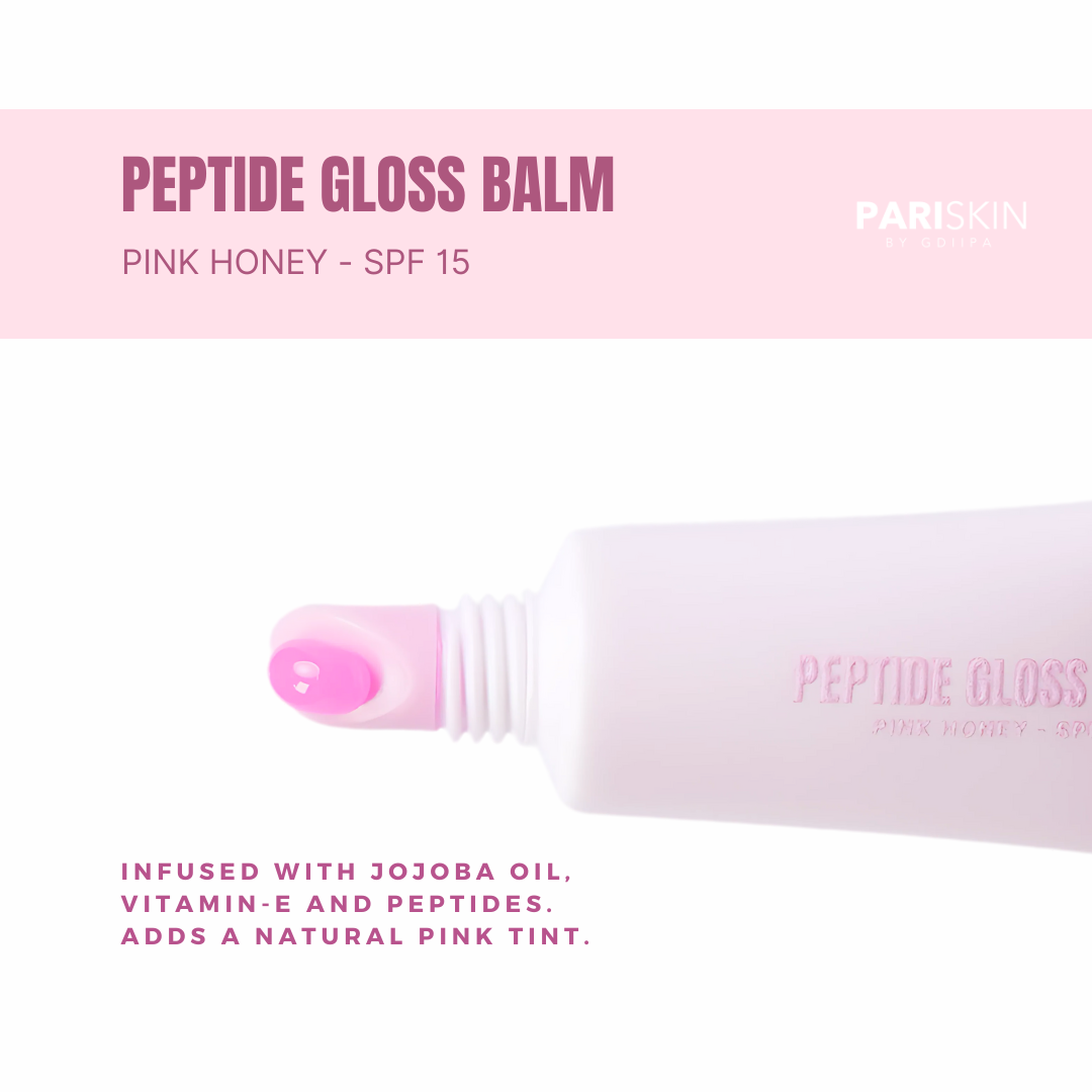 The Peptide Gloss Balm in Pink Honey is a hydrating lip balm designed to provide long-lasting moisture and a subtle pink tint. The lightweight formula offers a glossy finish that stays put throughout the day ensuring your lips look soft, plump and vibrant. With the added benefit of SPF 15, it also helps protect your lips from harmful UV rays, making it an essential product for everyday wear.